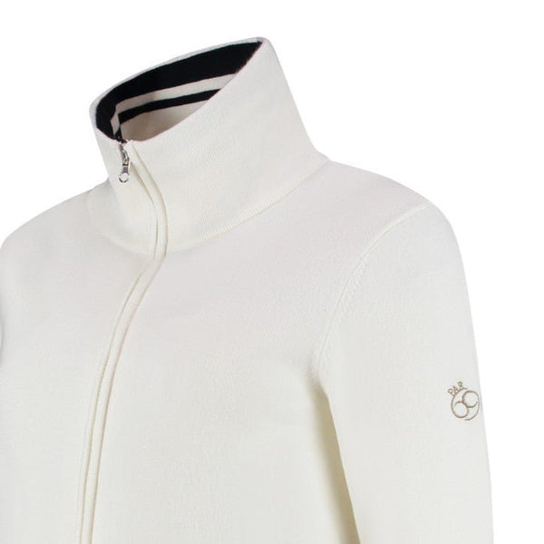 The Bernou Cardigan is a stylish white golf layer with classic navy stripes, designed for chilly moments on the course. Made for comfort and freedom of movement, it keeps you warm without restricting your swing. A timeless piece that blends performance, elegance, and practicality for every round of golf.